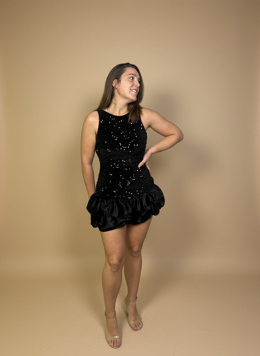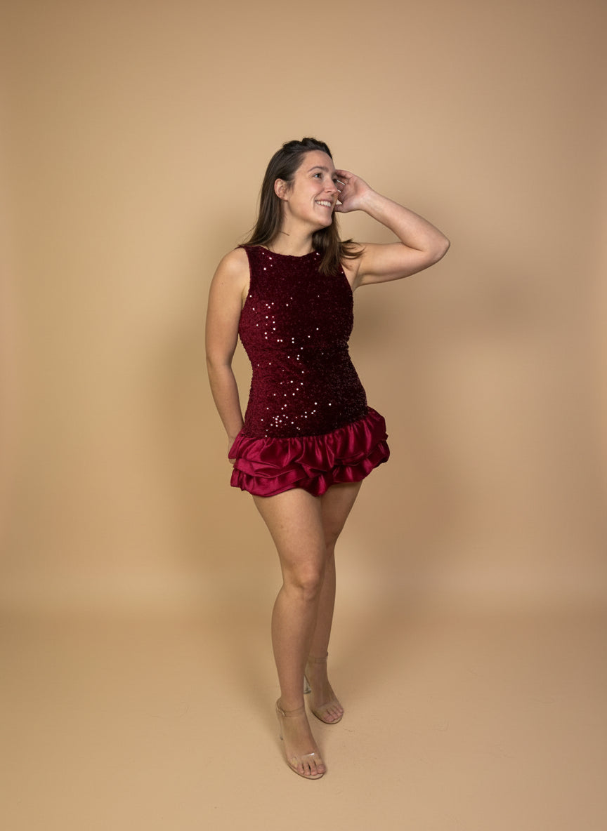 Brilla estas fiestas con CHERRY, un mono de terciopelo y lentejuelas con volantes satinados que aporta un toque festivo y muy favorecedor. Un diseño cómodo, llamativo y perfecto para tus cenas y eventos navideños.